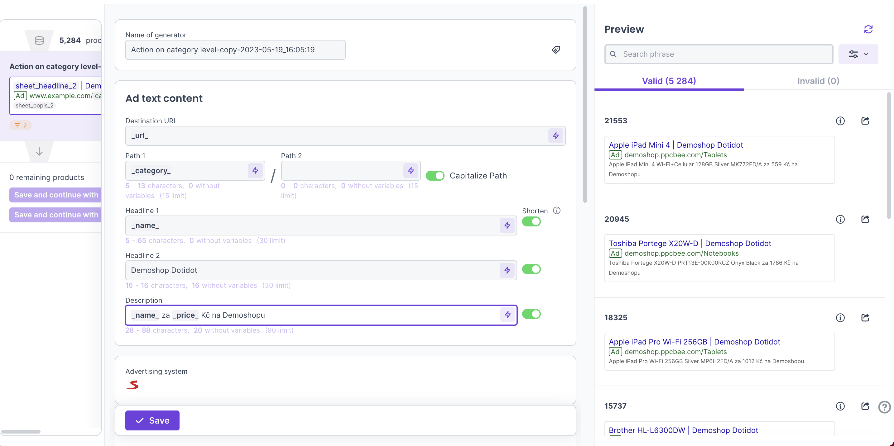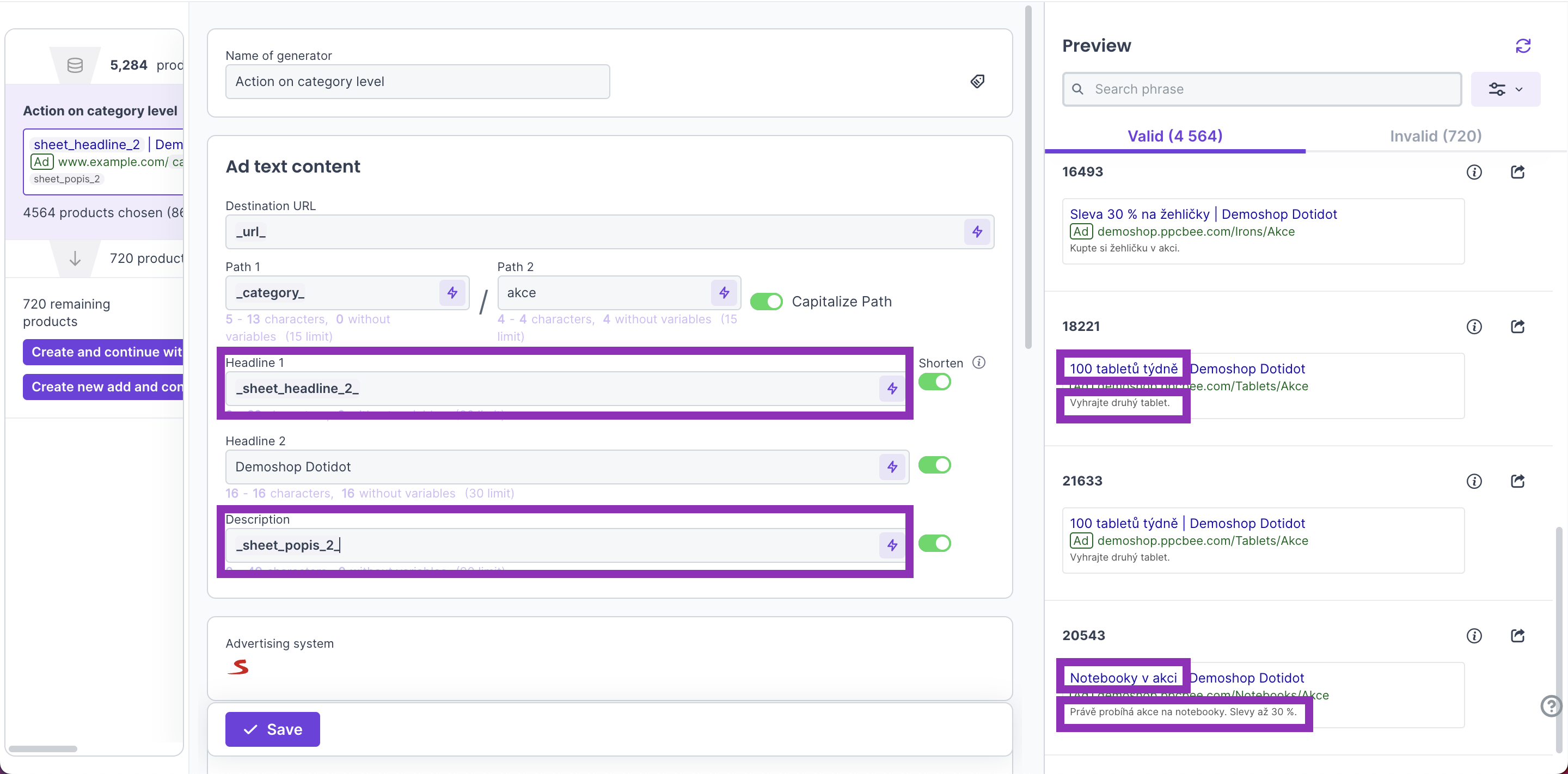- Preview of ads