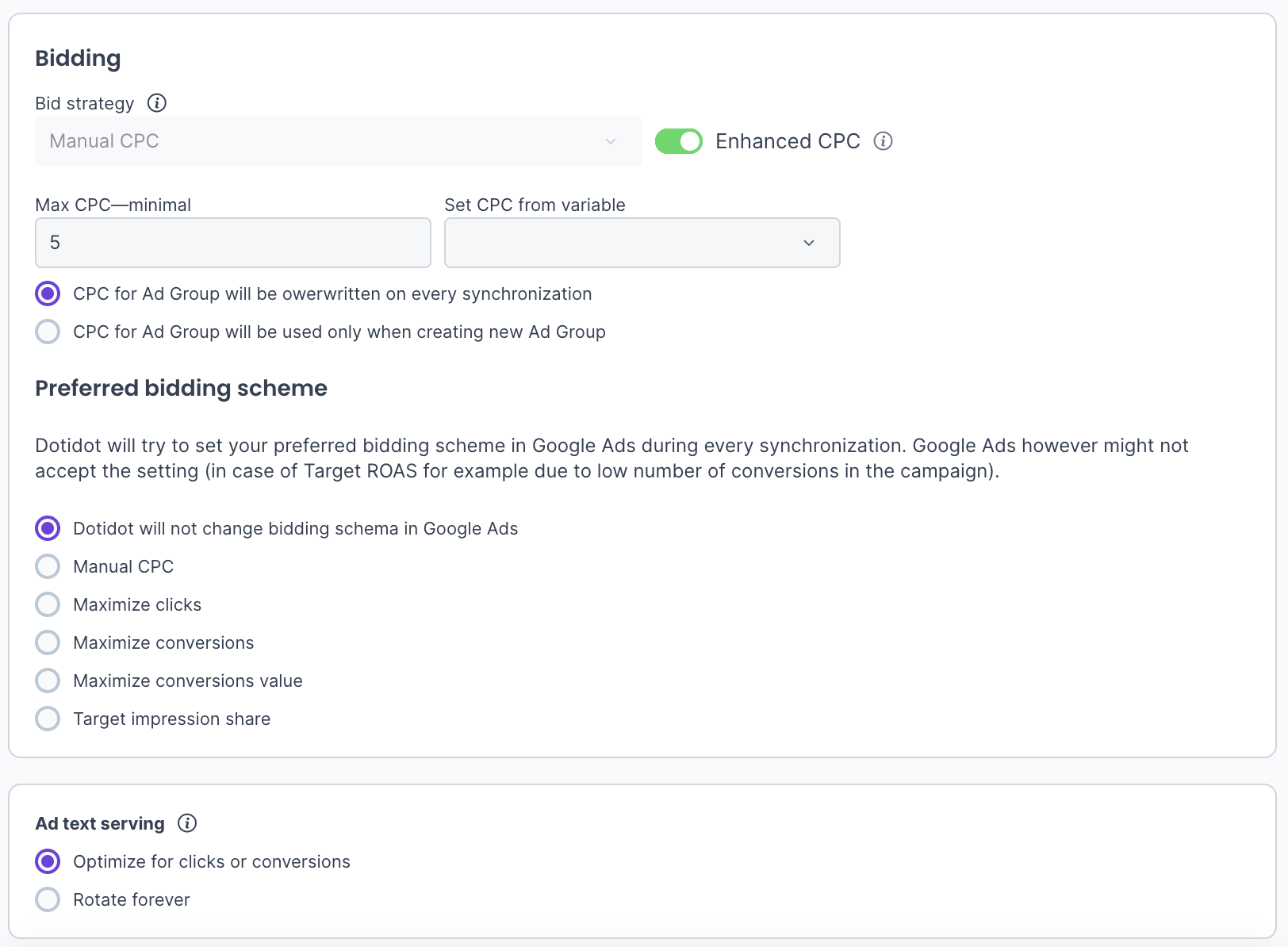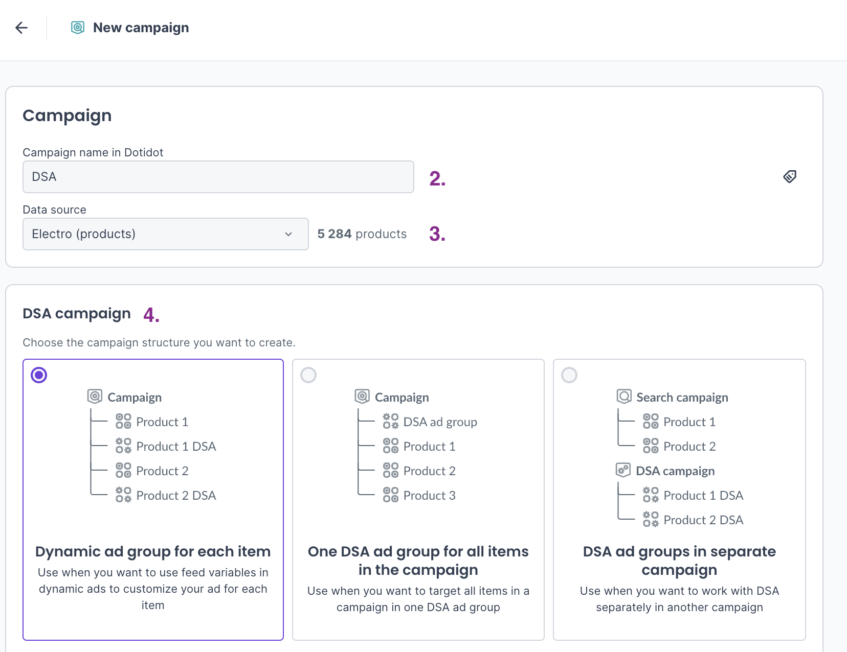In the past, it was possible to combine a search with DSA campaign, but you had to set everything up separately, which is an unnecessarily complicated solution for Dotidot. That's why we've introduced this very handy option that combines a classic search campaign with DSA adgroups in one.