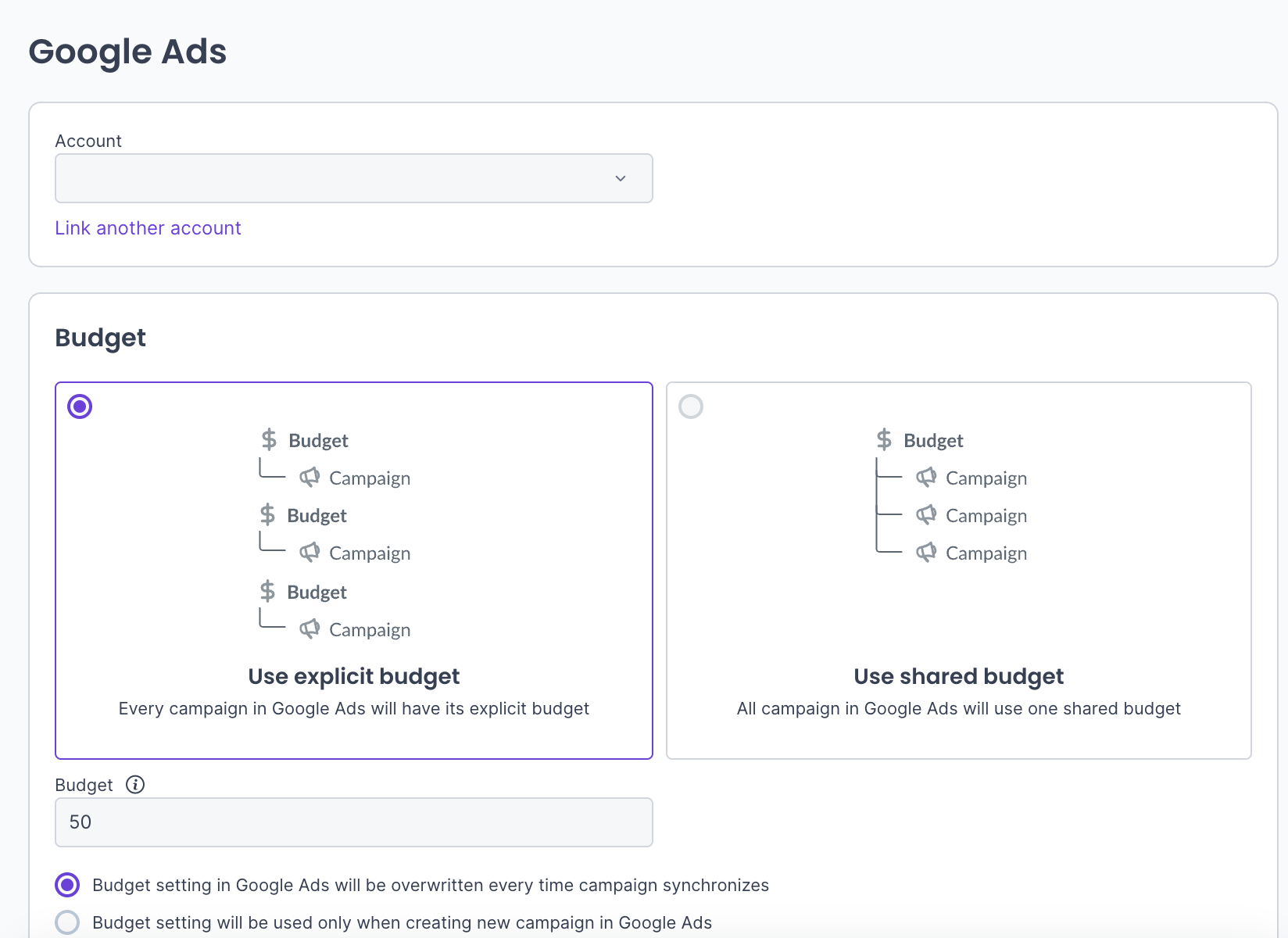 - Useful, for example, if you want to set a separate budget for each campaign.