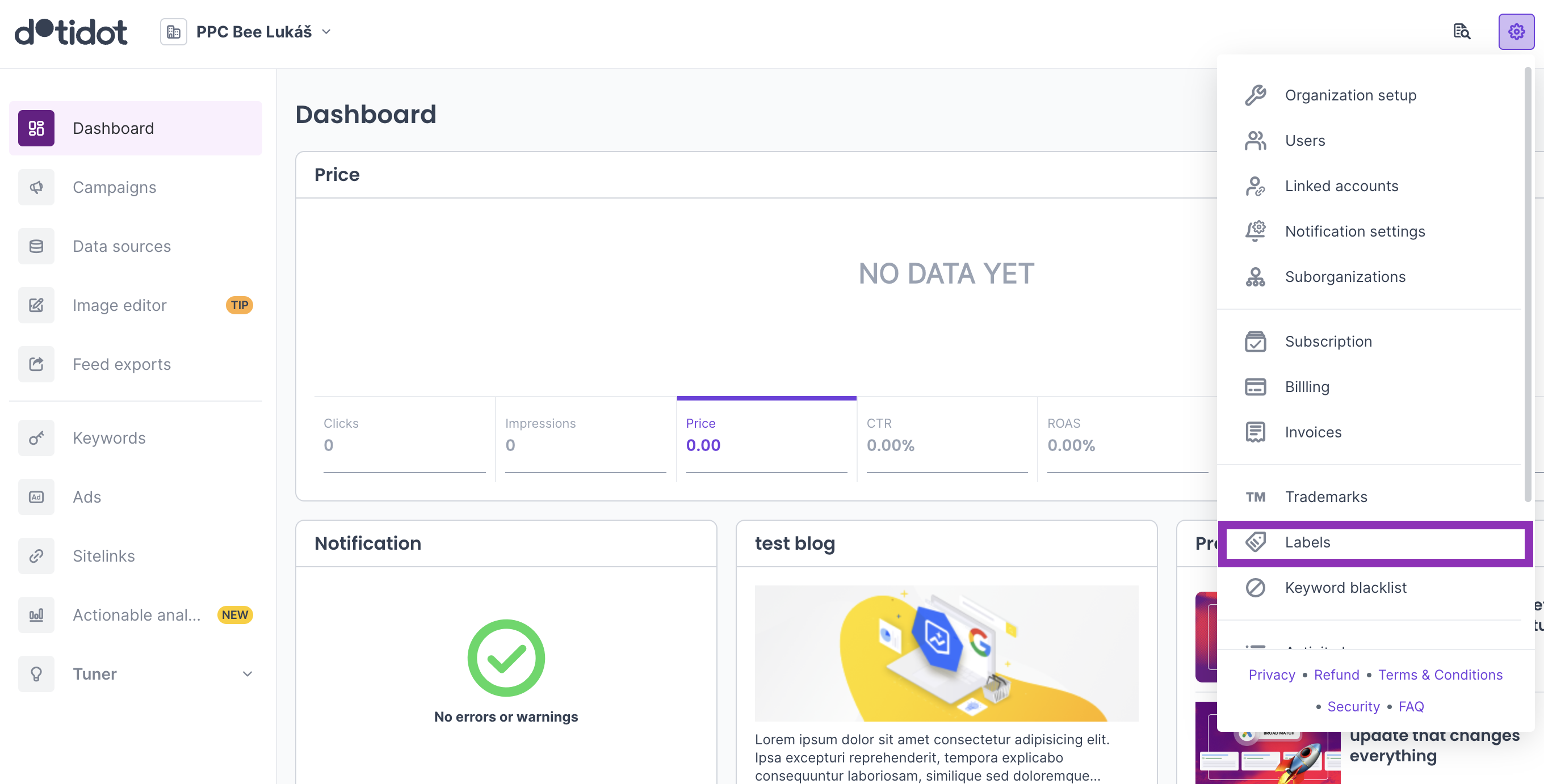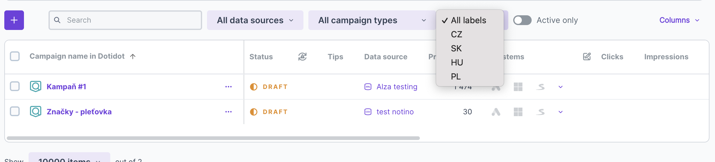 That's why we've developed in-app labeling that serves not only for the cases mentioned above, but in general for anyone who wants to get a bit of order in the app. The principle is simple - you create an arbitrary label for each element for example for campaign. Then you can select that label in the campaign list, which will only show you campaigns that have it assigned. In addition, the labels are beautifully visible in the campaign overview thanks to the color separation.