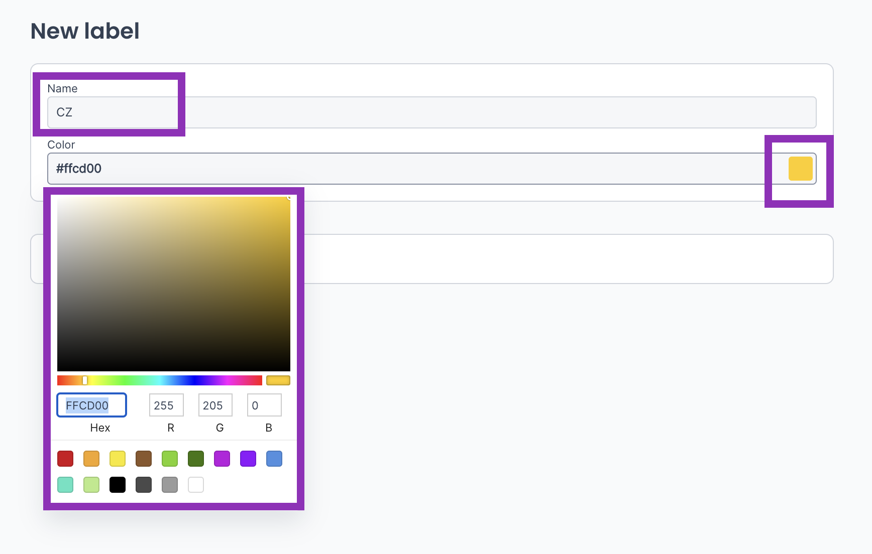 2. You can easily mix the colour and shade of the label yourself, or choose one of the preset colours.