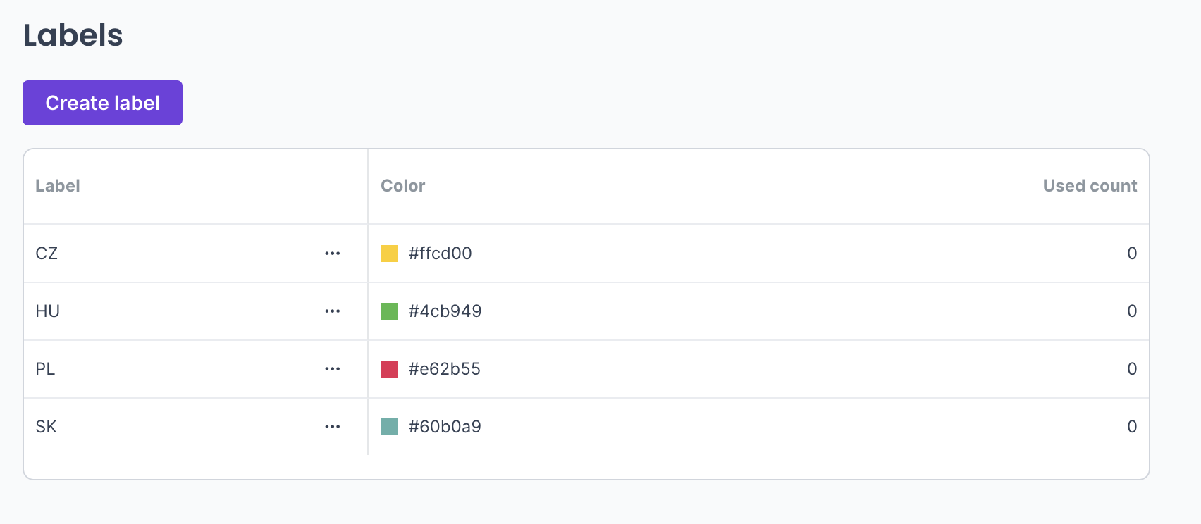 Once you create a label, it will appear in one list with all the labels you have created.